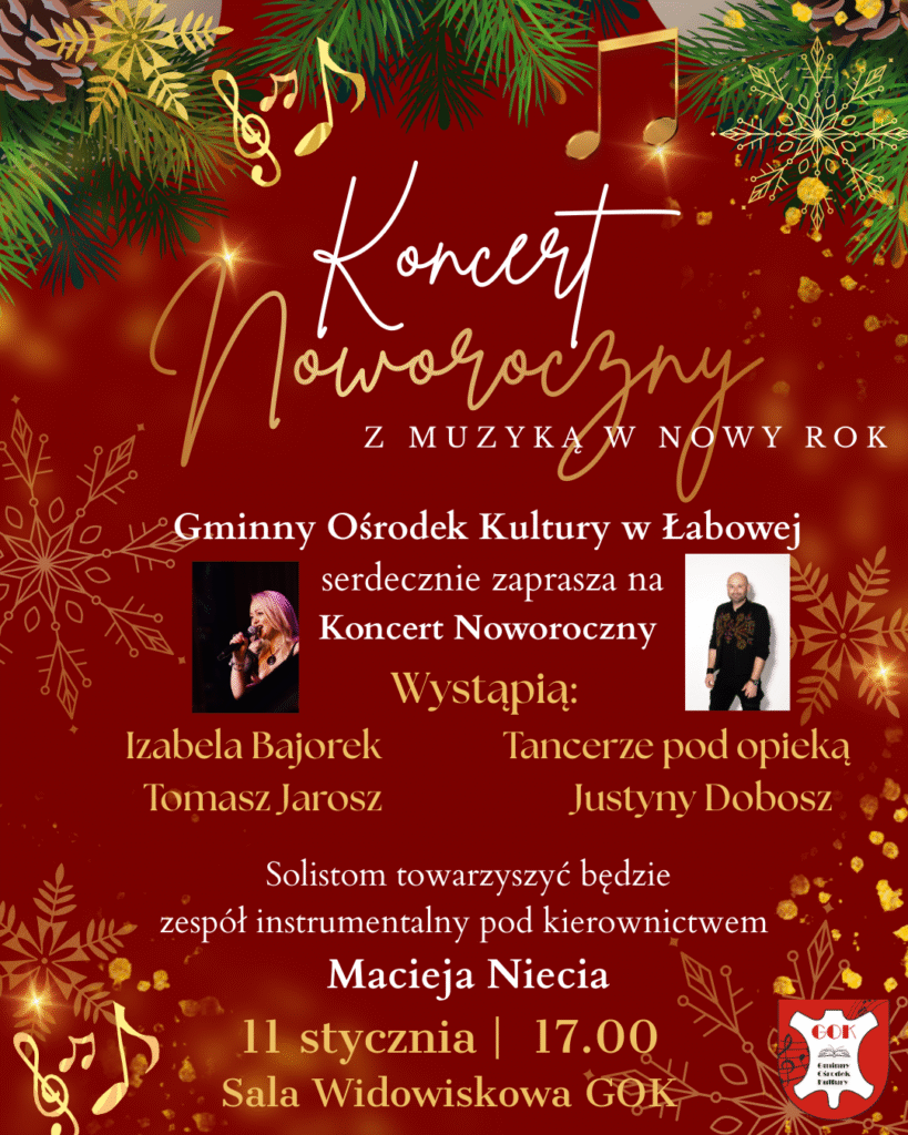 Gminny Ośrodek Kultury w Łabowej serdecznie zaprasza na wyjątkowy Koncert Noworoczny, pełen muzyki, tańca i pięknych emocji.