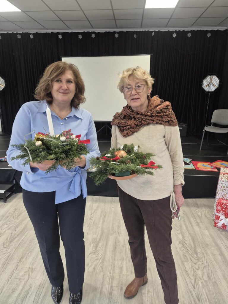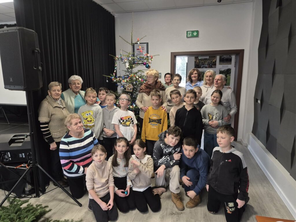 Podczas spotkania uczestnicy wspólnie wykonywali ozdoby choinkowe oraz świąteczne stroiki, którymi udekorowano choinkę przekazaną przez Nadleśnictwo Nawojowa. Był to czas dzielenia się pomysłami, doświadczeniem i kreatywnością, który sprzyjał rozmowom, integracji i budowaniu międzypokoleniowych relacji. W przestrzeni GOK zapanowała prawdziwie świąteczna atmosfera.