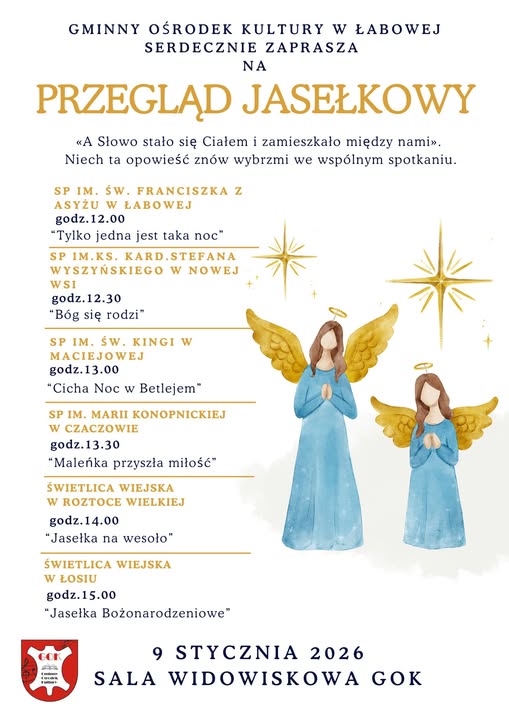 Gminny Ośrodek Kultury w Łabowej serdecznie zaprasza na Przegląd Jasełkowy, podczas którego swoje bożonarodzeniowe przedstawienia zaprezentują szkoły oraz świetlice z terenu Gminy Łabowa.