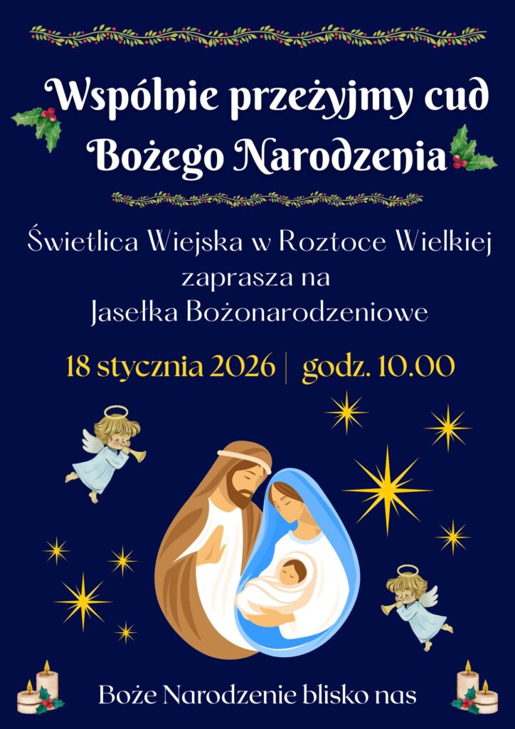 Świetlica Wiejska w Roztoce Wielkiej serdecznie zaprasza na Jasełka Bożonarodzeniowe, które odbędą się: