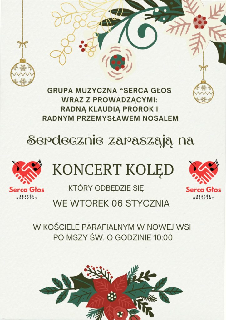 Serdecznie zapraszamy mieszkańców oraz gości na Koncert Kolęd, który odbędzie się: